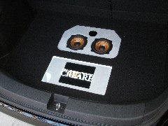 トランクルーム下側に、サブウーファーとアンプ類を取り付けしました。サブウーファーは2本をモノラル駆動で鳴らしています。エンクロージャーも最適なBOXを製作し、取付けしています。アンプはザブウーファー用にビーウィズを手前に取付けしてあります。カバーを取付ければ、上に荷物も載せられます。