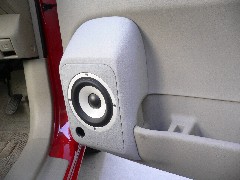 Aピラーにワイドレンジスピーカーを取り付けることで、