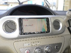アルパインからポルテ用の取付キットは販売されていませんが、ベースを作りしっかり固定されています。